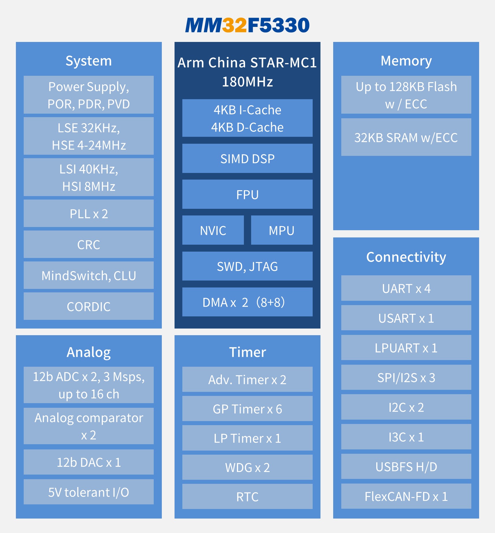 Armv8-M架構STAR-MC1處理器單片機MM32F5330系列