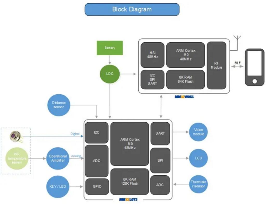 •主控MCU支持48MHz,支持0.2uA超低功耗模式喚醒