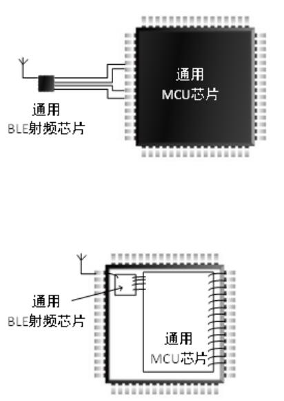 兩顆芯片通過(guò)PCB模組或合封的方式來(lái)完成功能組合。這一工作可以通過(guò)MCU或射頻芯片原廠來(lái)完成,也可以通過(guò)方案商來(lái)完成。射頻芯片廠家