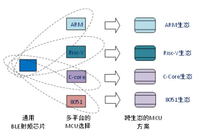 這樣,通過(guò)將通用ble射頻芯片和多樣化的微控制器芯片相結(jié)合,制造商可以快速組合多樣化和靈活的BLE單芯片或模塊化解決方案,以滿足不同的生態(tài)需求和市場(chǎng)需求。