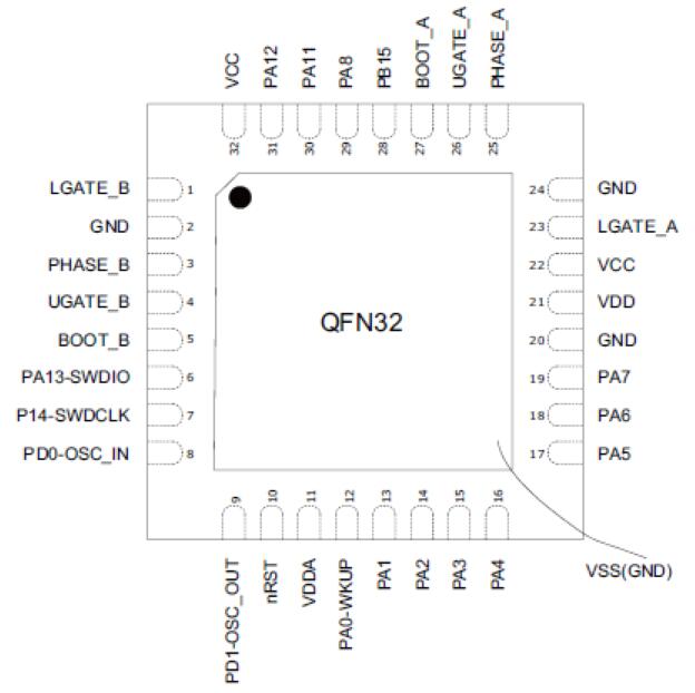 MM32SPIN120B內嵌兩組具備有自舉二極管的N通道半橋柵極驅動器,提供QFN32封裝形式,適合于單相永磁無刷電機和快速無線充電等多種應用場合。靈動微一級代理提供免費開發(fā)板測試及技術支持.