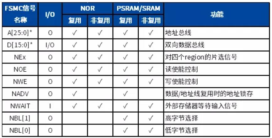 Nor Flash,可以選用復用或非復用方式擴展NOR Flash,還可以通過配置實現(xiàn)外擴8位總線或16位總線接口的NOR Flash。