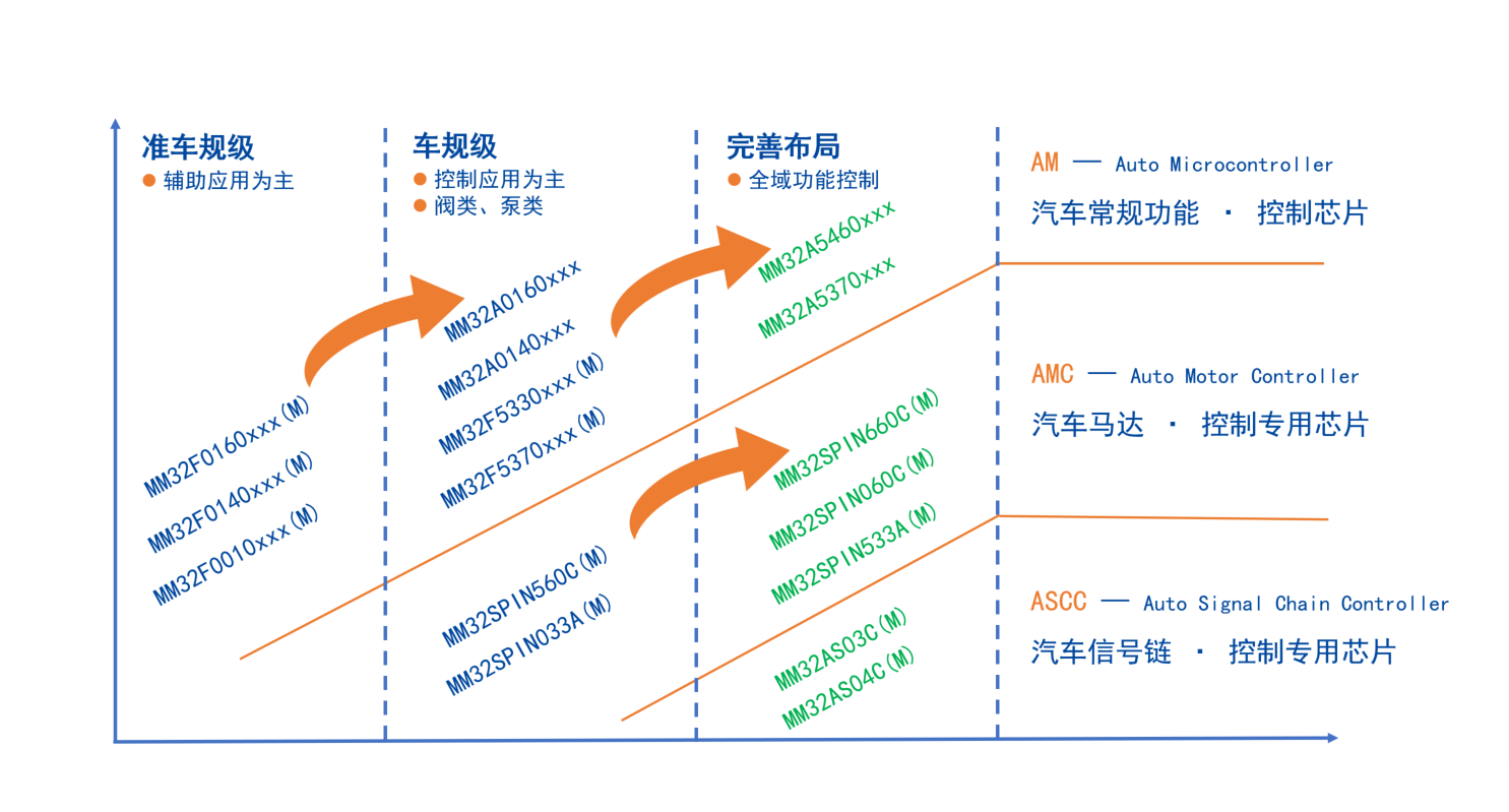 靈動(dòng)車規(guī)級(jí)芯片MM32F、MM32A等面向汽車應(yīng)用的產(chǎn)品系列提供AEC-Q100測(cè)試驗(yàn)證。