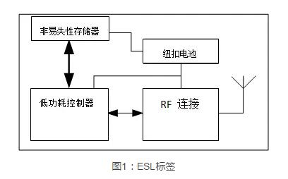 結構最簡單的ESL由一個LCD或電子、RF模塊、墨水顯示屏、配套處理器、紐扣電池和低引腳數存儲器(易失性和非易失性存儲器)構成??梢愿鶕枨蠊δ艿牟煌?,將所需要的價格走向,購買走向和當前庫存信息存儲在ESL中,待一天結束刷新中央服務器的數據。如果要實現用一顆小紐扣電池供電并維持數幾年的工作機能需要讓整個系統使用一個低功耗控制器和存儲器?;趦戎玫倪B接選項(通常是BLE或Wi-Fi),板載存儲器可兼作協議棧存儲空間,繞過商場的中央服務器,直接連接用戶手機。